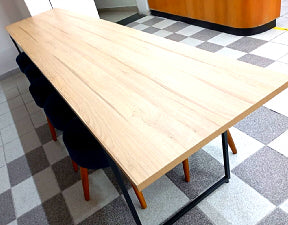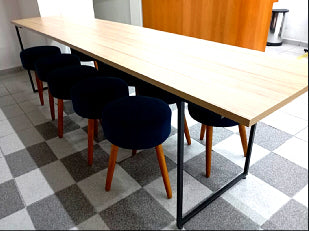 GRUPOS GRANDES, SOCIALIZAÇÃO, EXPERIÊNCIA! Mesa 👥 longa 273cm para grupos, famílias, 🎉 estilo comunitário. Tampo grosso 25mm 👨‍👩‍👧‍👦 aguenta tudo. 2 pés nas 🪵 pontas + haste central = 💪 estabilidade. Crie experiência compartilhada onde ⚖️ clientes socializam. Madeira aquece, metal 🎭 moderniza! 🪵Condição do item (1-5)=